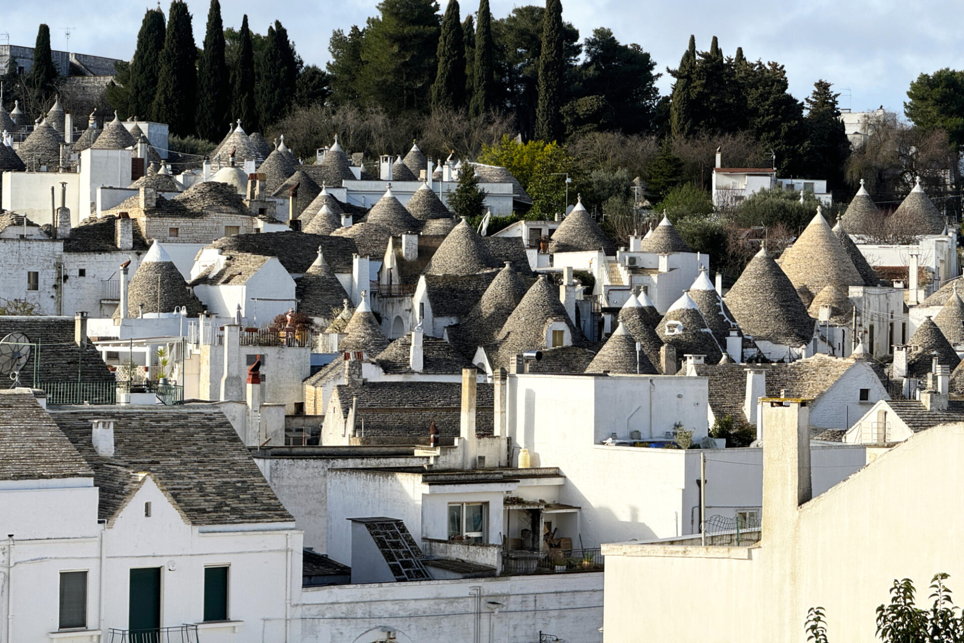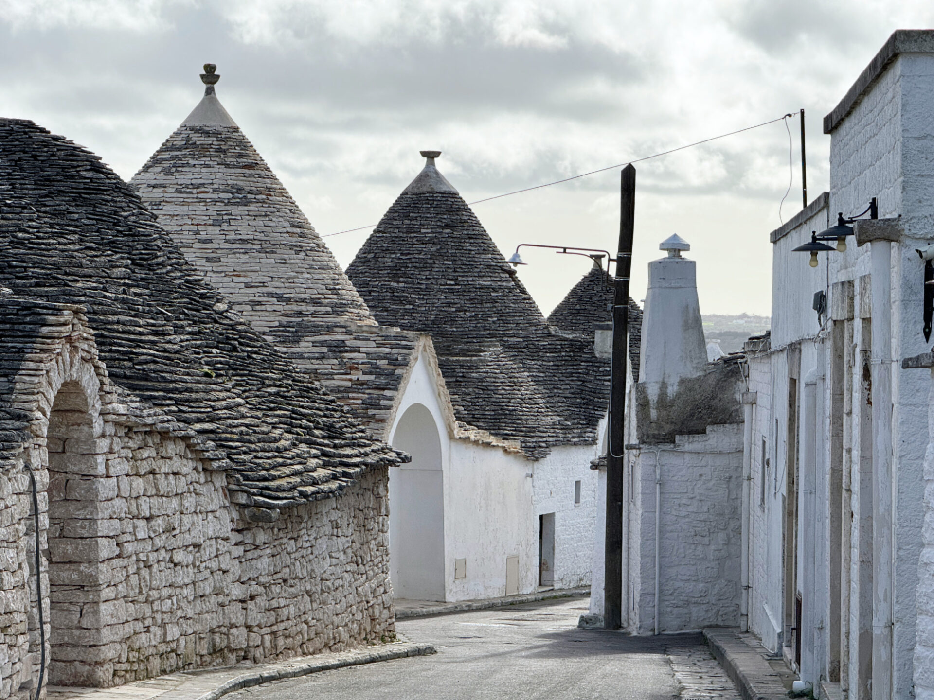 Turystycznym sercem miejscowości jest Rione Monti – południowa, najstarsza część miasta, w której znajduje się ponad tysiąc trulli! Obecnie budynki są zaadaptowane na kawiarnie, restauracje, hotele, sklepy z pamiątkam i nie tylko, dzięki czemu wszędzie tu występuje turystyczna, choć zaskakująco spokojna atmosfera, zwłaszcza o poranku, co widać na poniższych zdjęciach.
