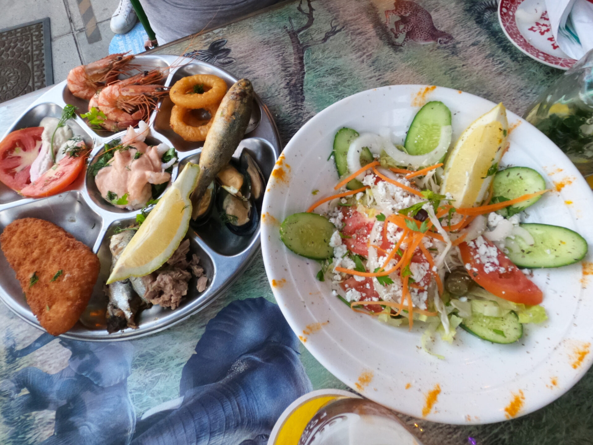 • Agora Tavern – pierwsza, wręcz obowiązkowa pozycja na gastronomicznej mapie Pafos! Tutaj kupisz cudowne meze. Czym jest meze? To mogąca trwać nawet 2 godziny uczta, podczas której kelner co chwilę donosi kolejne przysmaki (widać to na pierwszym zdjęciu poniżej). Porcje są niewielkie, ale jest ich mnóstwo – każda inna. Chodzi więc o to, by podczas jednej kolacji spróbować różnorodnych smaków Cypru. Dania są wyśmienite, a atmosfera cudowna. Taka przygoda kosztuje w 2026 r. ok. 30 EUR za osobę, bez napojów. Cena jest więc wysoka, ale to coś więcej niż tylko obiad – to atrakcja sama w sobie.