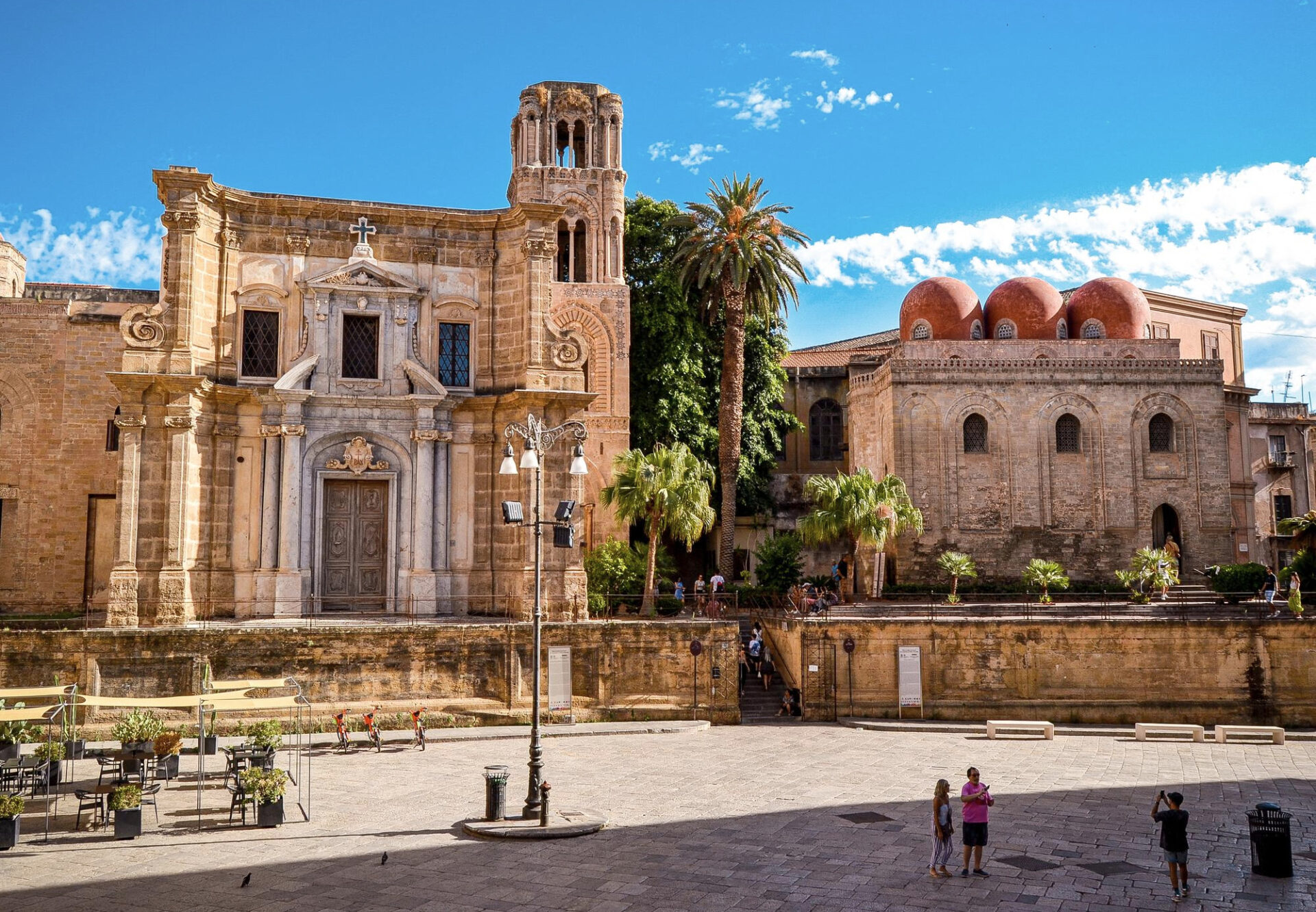 Przykładów architektury arabsko-normańskiej jest w w mieście wiele, bo w zasadzie większość największych atrakcji ma z nią coś wspólnego. Natomiast choć nie jesteśmy ekspertami i możemy się mylić, to wspomniane połączenie kultur najwyraźniej widzieliśmy zatrzymując się przy kościołach San Cataldo i San Giovanni degli Eremiti, które mają śliczne, czerwone kopułki. Przy tym pierwszym znajdują się też fragmenty dawnych murów obronnych miasta.